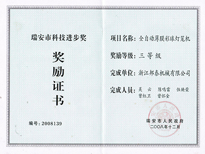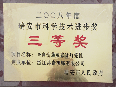 2008年度瑞安市科學(xué)技術(shù)進(jìn)步獎三等獎